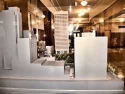 EXPERIENCES & OBSERVATIONS. Thinking I might need to get there early to get a good seat, I arrived at about 1:00 p.m. after taking in a great lunch (Spaghetti Marinara at the Steak & Catfish & Italian Kitchen restaurant at 305 N. Walker). When I arrived and to my surprise, only 3 or so others were milling around in anticipation of the meeting and the City Council chambers were dark — I wondered if I was in the right place or at the wrong time. Seeing the SandRidge Commons model (below) and a Board of Adjustment agenda outside the City Council chambers, I figured that I was just early.